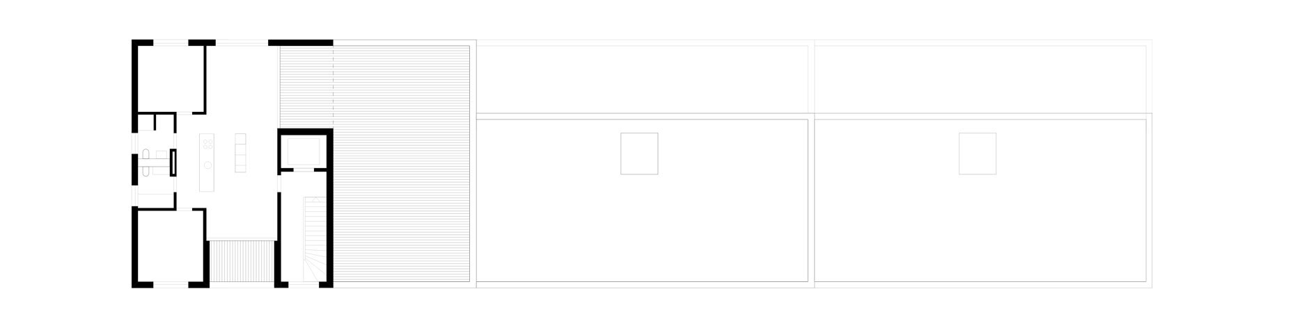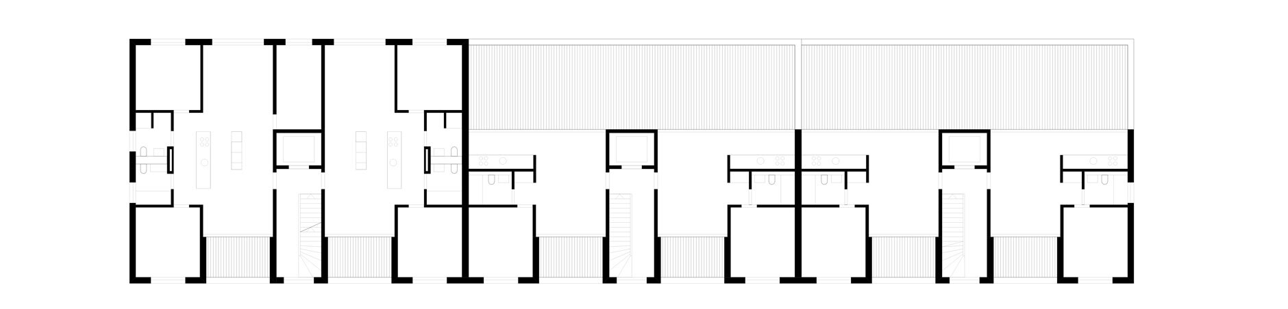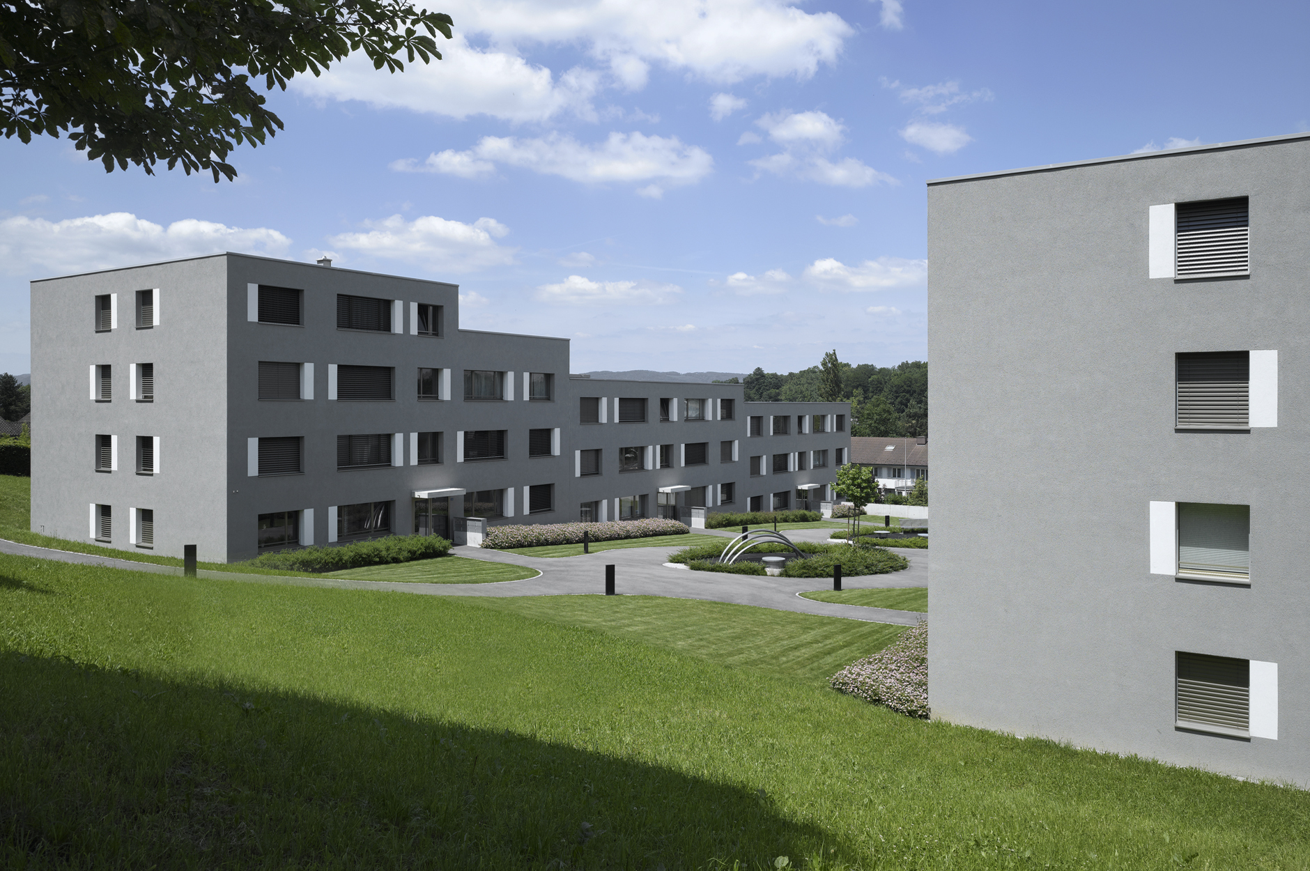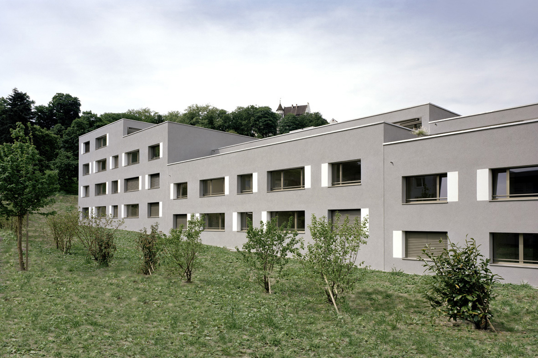 Loggia. Die Attikawohnungen sind als 2.5- bzw. 3.5-Zimmer-Wohnungen mit grosser, nach aussen gewandter Terrasse ausgeführt. Das geforderte Raumprogramm mit Total 38 Wohnungen wird in zwei länglichen, dem Hangverlauf entsprechend abgetreppten Baukörpern untergebracht. Die Häuser sind dabei 2- bis 3-geschossig und haben ein zusätzliches Attikageschoss.
