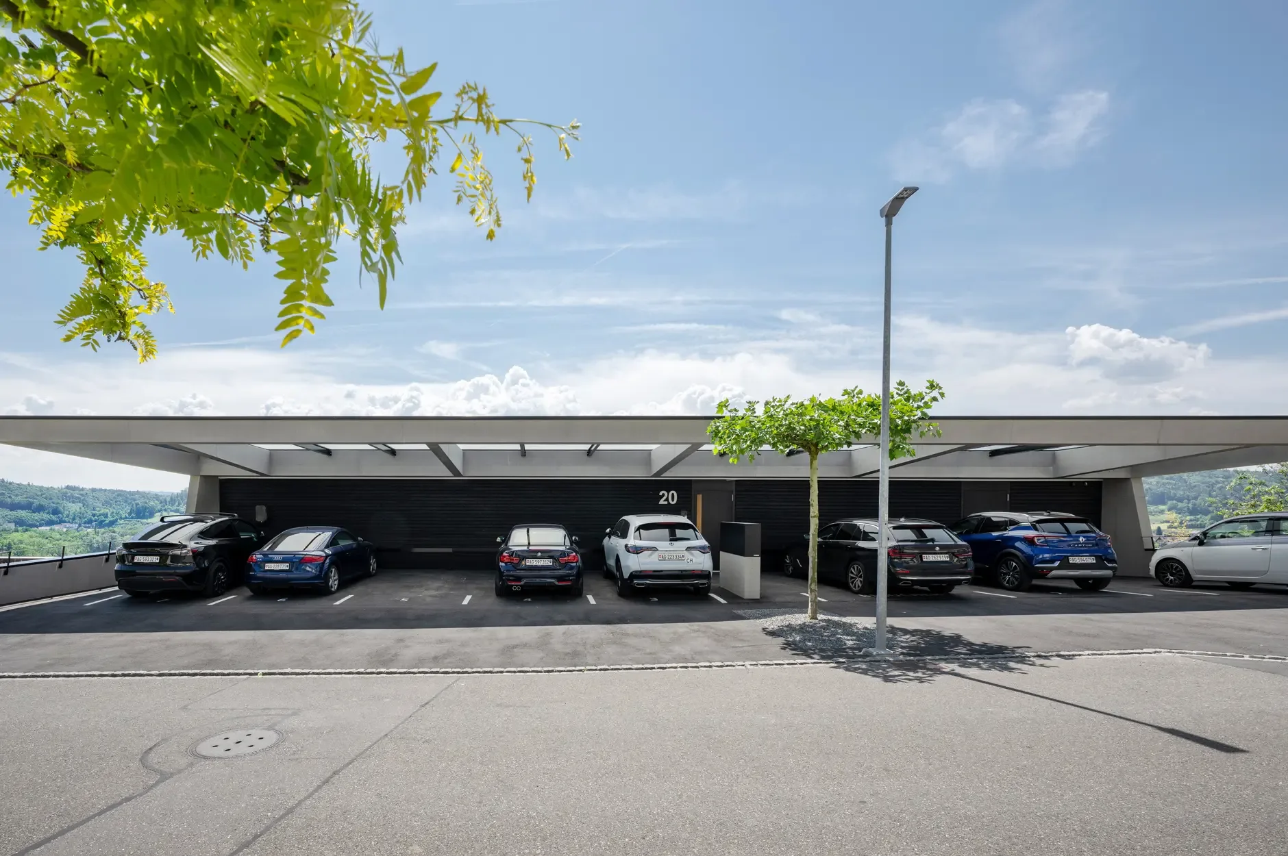 Am Südhang von Erlinsbach befindet sich ein altes Wohnhaus, welches neu durch ein Terrassenhaus ersetzt wird. Die Parzelle wird hangseitig über den Nellweg erschlossen. Durch die steile Topografie ist von dieser Seite nur das Attikageschoss (Ebene 3) des dreigeschossigen Terrassenhauses ersichtlich. Unter einem pergolaähnlichen Vordach befinden sich acht Parkplätze für Besucher und Bewohner. Nebst dem Hauseingang, den Park- und den Fahrradabstellplätzen gibt es auf dem obersten Geschoss eine loftartige 3.5 Zimmer-Wohnung. Über das Treppenhaus oder mit dem Aufzug gelangt man in die unteren drei Geschosse, auf welchen sich jeweils zwei 2.5 bzw. 3.5 Zimmer-Wohnungen befinden. Während die untersten beiden Geschosse im Grundriss identisch übereinanderliegen, sind die darüberliegenden Geschosse terrassiert.